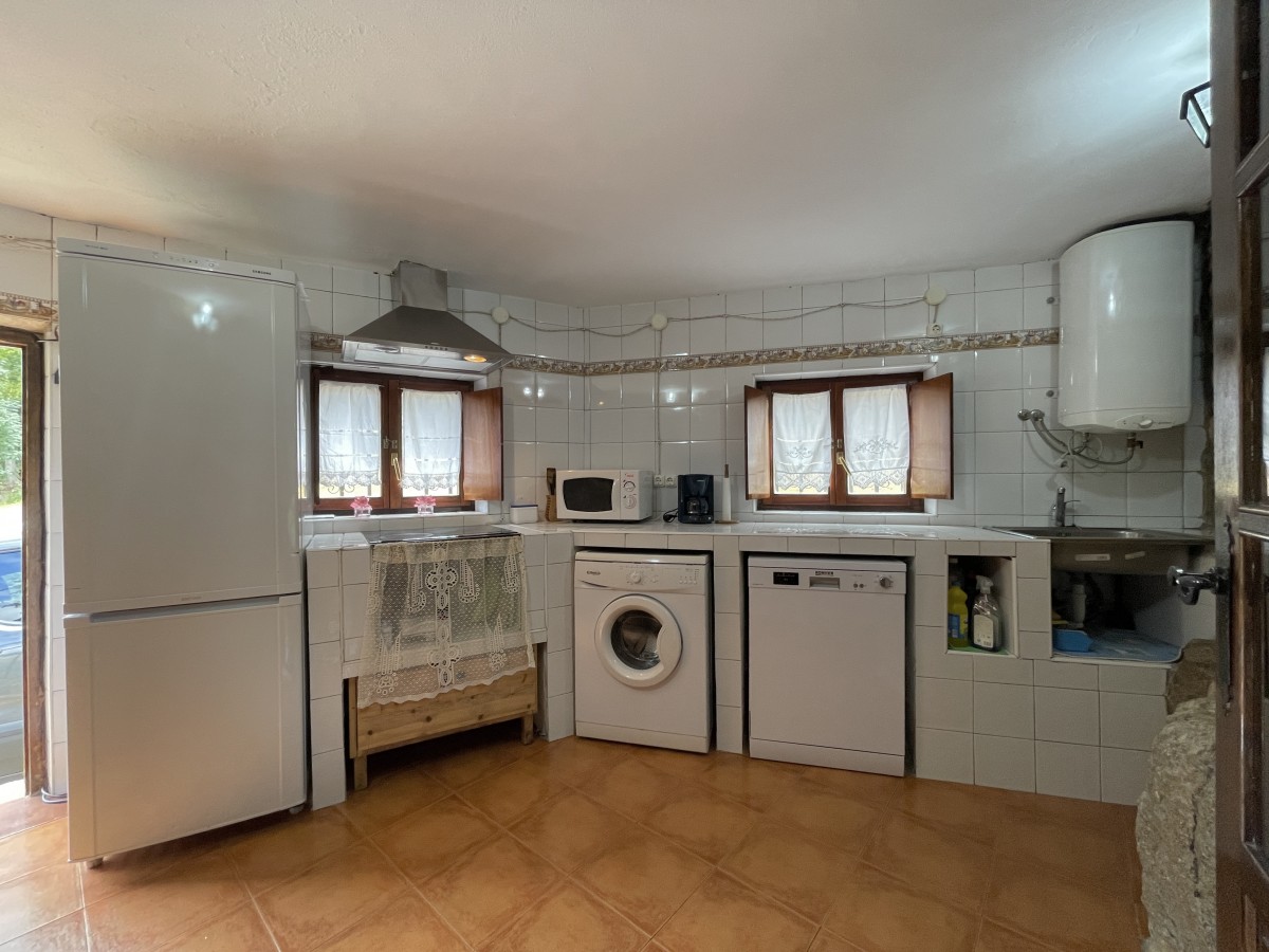 Dispone de: Terraza, zona de aparcamiento. 1 habitación con cama doble de matrimonio, 1 habitación con cama individual, 1 baño compartido, calefacción, Salón comedor con TV y chimenea, cocina, con frigorífico, lavadora, lavavajillas, microondas.colección de juegos. Parrilla para asar y leña gratis a disposición del cliente y un bonito prado para disfrutar con tu mascota.